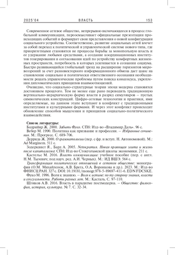 8. Шляков А.В. 2016. Власть в парадигме постмодерна. - Общество: философия, история, культура. № 7. С. 32-34. EDN: WGBUVT