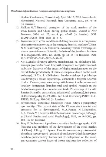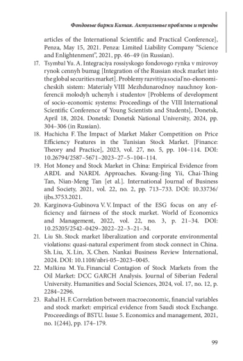 Ключевые фразы: китайская фондовая биржа, эконо- мический рост, технологические достижения, ИНВЕСТОРЫ, ИНТЕРНАЦИОНАЛИЗАЦИЯ, регулирование, риски, финансовая стабильность