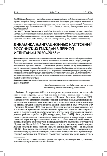 Ключевые фразы: эмиграция, общественные установки, эмиграционные настроения, динамика эмиграции, патриотизм