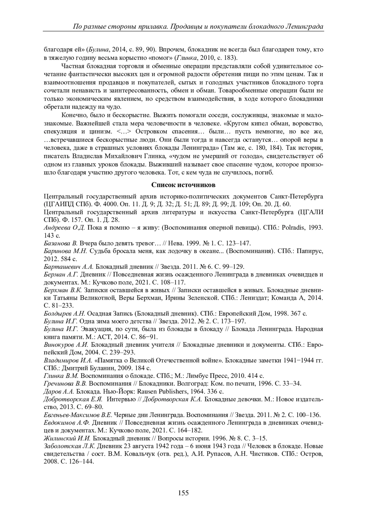 3. Рупасов А.И., Чистиков А.Н. Блокадные дневники: катастрофа в реальном времени // Записки оставшейся в живых. Блокадные дневники Татьяны Великотной, Веры Берхман, Ирины Зеленской. СПб.: Лениздат; Команда А, 2014. С. 7-14. EDN: YLVRNX