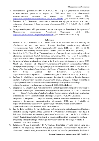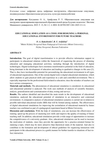 КАТУШЕНКО О. А., АРИФУЛИНА Р. У. ОБРАЗОВАТЕЛЬНАЯ СИМУЛЯЦИЯ КАК ИНСТРУМЕНТ ПРОЕКТИРОВАНИЯ ПЕРСОНАЛЬНОЙ ОБРАЗОВАТЕЛЬНОЙ СРЕДЫ БУДУЩИХ ПЕДАГОГОВ // ВЕСТНИК МИНИНСКОГО УНИВЕРСИТЕТА. 2025. ТОМ 13, № 1