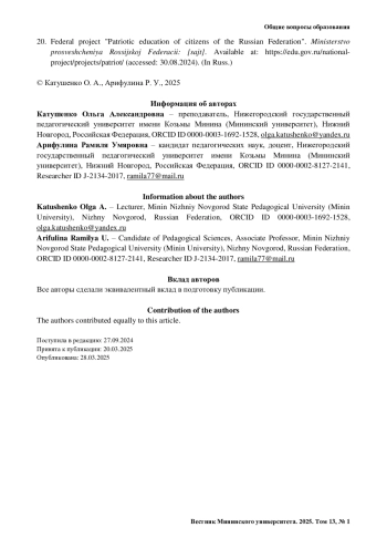 Журнал: ВЕСТНИК МИНИНСКОГО УНИВЕРСИТЕТА