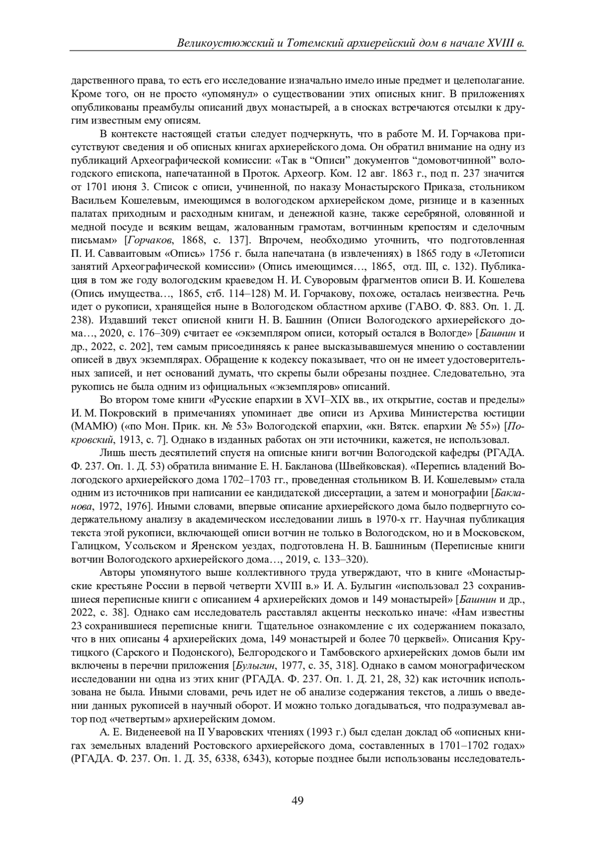 Статья: ВЕЛИКОУСТЮЖСКИЙ И ТОТЕМСКИЙ АРХИЕРЕЙСКИЙ ДОМ В НАЧАЛЕ XVIII ВЕКА: ИСТОРИОГРАФИЧЕСКИЙ И ИСТОЧНИКОВЕДЧЕСКИЙ АСПЕКТЫ (2024)
