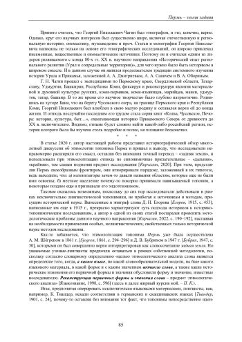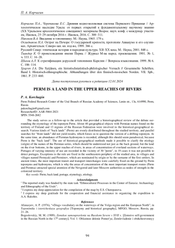 Исследование является продолжением статьи, представляющей собой историографический обзор дискуссии об этимологии топонима Пермь. К историко-географическому исследованию было привлечено около сорока географических объектов с пермскими названиями, обнаруженных на территории Финляндии и 13 регионов Российской Федерации. Разного рода «задние земли» (перми) равномерно распределены на всей изученной территории, причем параллельные поиски «передних земель» результатов не дали, что вынуждает поставить под сомнение версию о дрейфующем топониме. При этом фиксируется обилие пермских гидронимов, хотя это должно казаться парадоксальным, ибо Perämaa, Пермь - это земля задняя. Применение историко-географических методов позволило выяснить этиологию (происхождение) онимов пермского ряда, которые следует понимать не просто как заднюю землю, но землю на речных задах, в верховьях рек, в районах сосредоточения сухопутных отрезков водно-волоковых путей. В окрестностях 30 «пермей» фиксируются волоки разной интенсивности использования, в 19 случаях волоков обнаружить не удалось. Исключения из правила фиксируются на юго-восточной периферии изучаемой области, у сел и деревень с названием Пермяки и Перминовы, которые номинированы по происхождению или по фамилии первопоселенцев. В древности важнейшие транзитно-транспортные развязки тщательно фиксировались на местности пермскими топонимами и гидронимами, именно поэтому районы концентрации важнейших волоков (Перми и Пермцы) привлекали особое внимание новгородских, а позднее московских властей, как узлы прочности на колонизируемой территории.