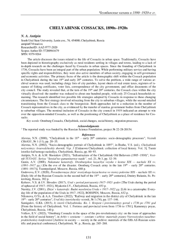 АНТИПИН Н. А. ЧЕЛЯБИНСКИЕ КАЗАКИ В 1890-1920-Е ГОДЫ // ВЕСТНИК ПЕРМСКОГО УНИВЕРСИТЕТА. ИСТОРИЯ. 2024. № 2 (65)
