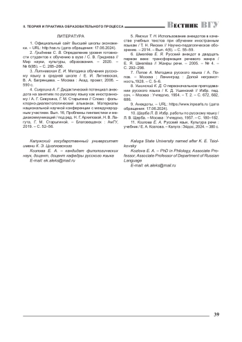 5. Ямских Т. Н. Использование анекдотов в качестве учебных текстов при обучении иностранным языкам / Т. Н. Ямских // Научно-педагогическое обозрение. - 2014. - Вып. 4(6). - С. 55-59. EDN: SUFHNV