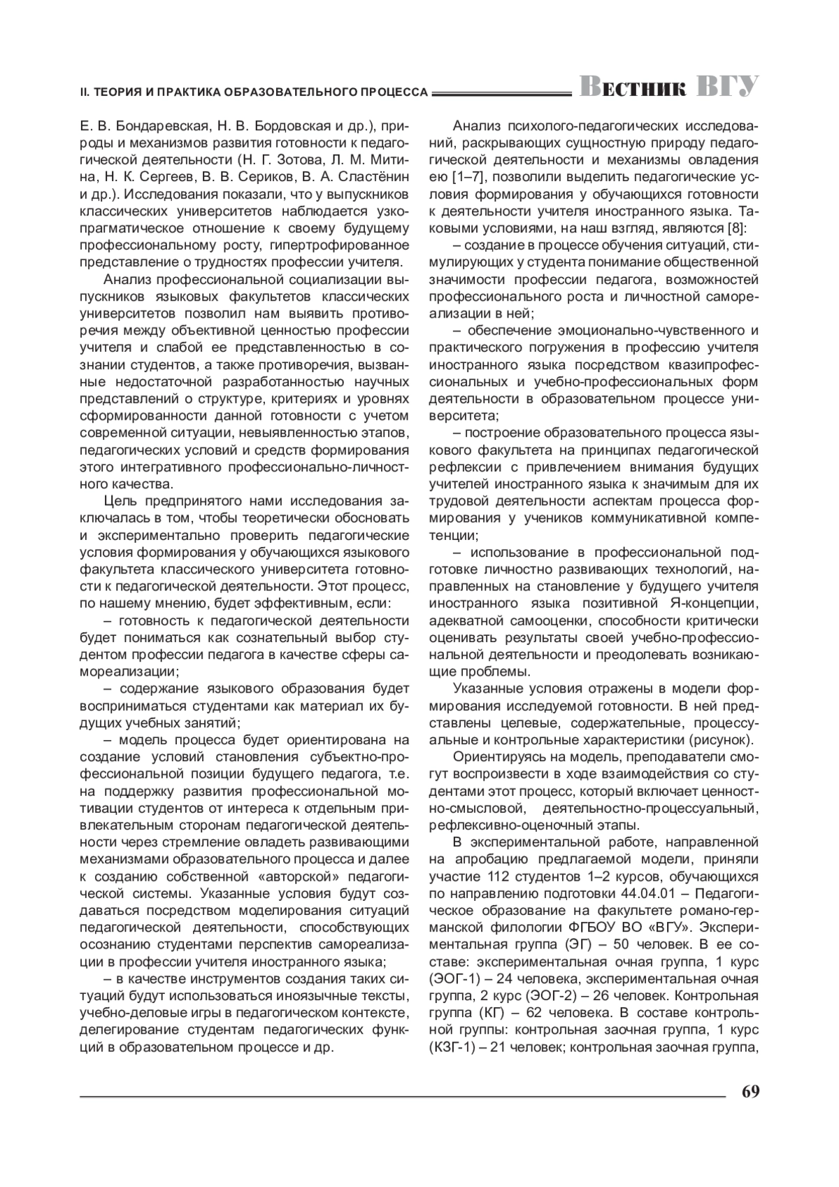 Журнал: ВЕСТНИК ВОРОНЕЖСКОГО ГОСУДАРСТВЕННОГО УНИВЕРСИТЕТА. СЕРИЯ: ПРОБЛЕМЫ ВЫСШЕГО ОБРАЗОВАНИЯ