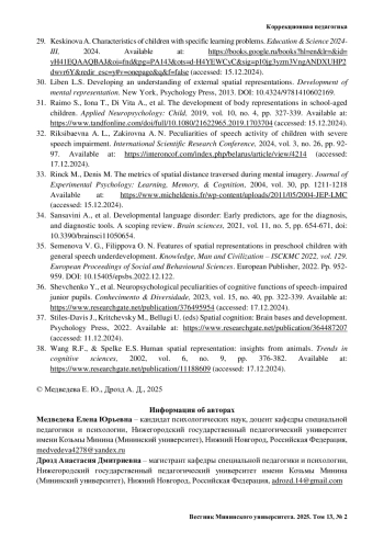 36. Shevchenko Y., et al. Neuropsychological peculiarities of cognitive functions of speech-impaired junior pupils // Conhecimento & Diversidade. 2023. Vol. 15, no. 40. Pp. 322-339. Available at: https://www.researchgate.net/publication/376495954 (accessed: 17.12.2024).