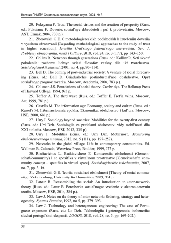 36. Шибаршина, С.В. Социальные сети для ученых: новая форма социальности? / С.В. Шибаршина // Эпистемология и философия науки. - 2019. - Т. 56, № 4. - С. 21-28. DOI: 10.5840/eps201956463 EDN: HNXHRD