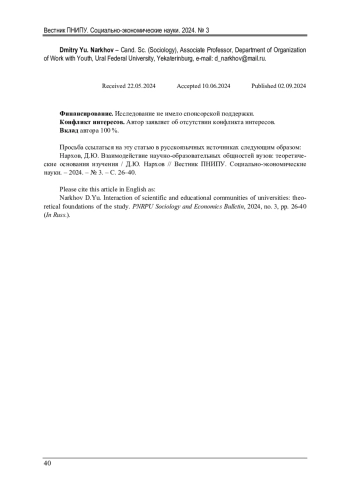 3. Зборовский, Г.Е. Научно-педагогические работники как социальная общность в меняющихся условиях академического развития / Г.Е. Зборовский, П.А. Амбарова // Образование и наука. - 2022. - Т. 24, № 5. - С. 147-180. DOI: 10.17853/1994-5639-2022-5-147-180 EDN: DQKMBA