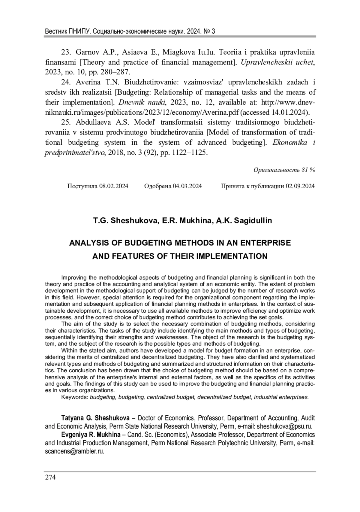 24. Аверина, Т.Н. Бюджетирование: взаимосвязь управленческих задач и средств их реализации [Электронный ресурс] / Т.Н. Аверина // Дневник науки. - 2023. - № 12. - URL: http://www.dnevniknauki.ru/images/publications/2023/12/ economy/Averina.pdf (дата обращения: 14.01.2024). EDN: ATNBVI