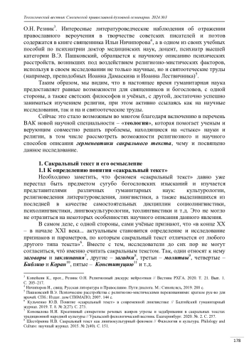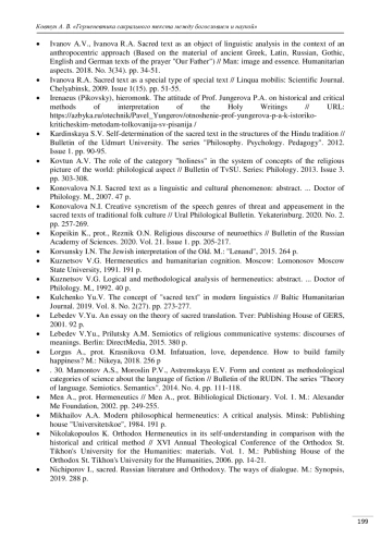 26. Кульченко Ю.В. Понятие «сакральный текст» в современной лингвистике // Балтийский гуманитарный журнал. 2019. Т. 8. № 2(27). С. 273-277.