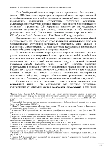 20. Коновалова Н.И. Сакральный текст как лингвокультурный феномен: автореф. дис. ... д-ра филол. наук. М., 2007. 47 с.