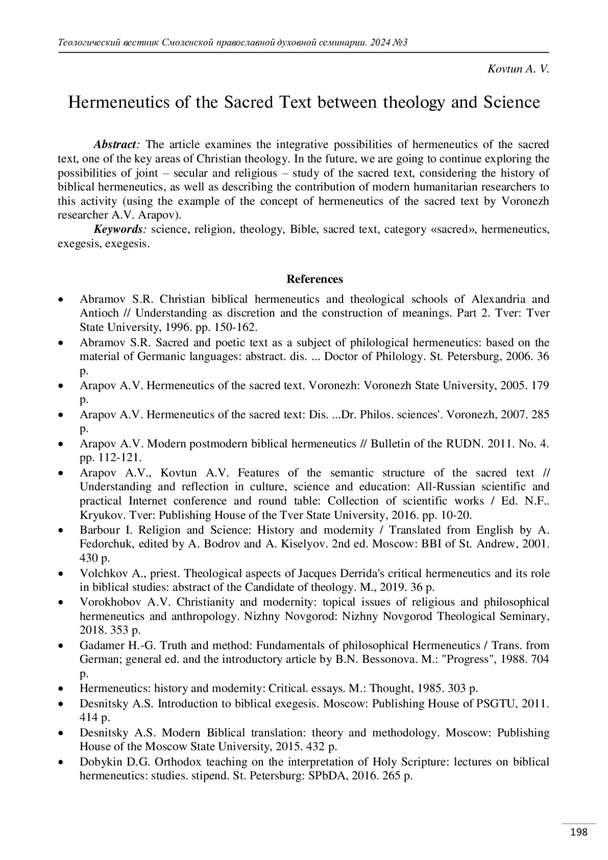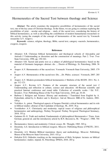4. Арапов А.В. Герменевтика сакрального текста: Дис. ... доктора филос. наук. Воронеж, 2007. 285 с.