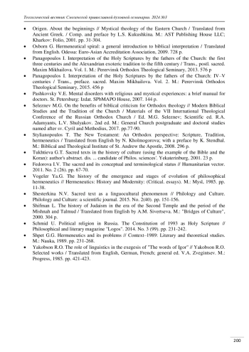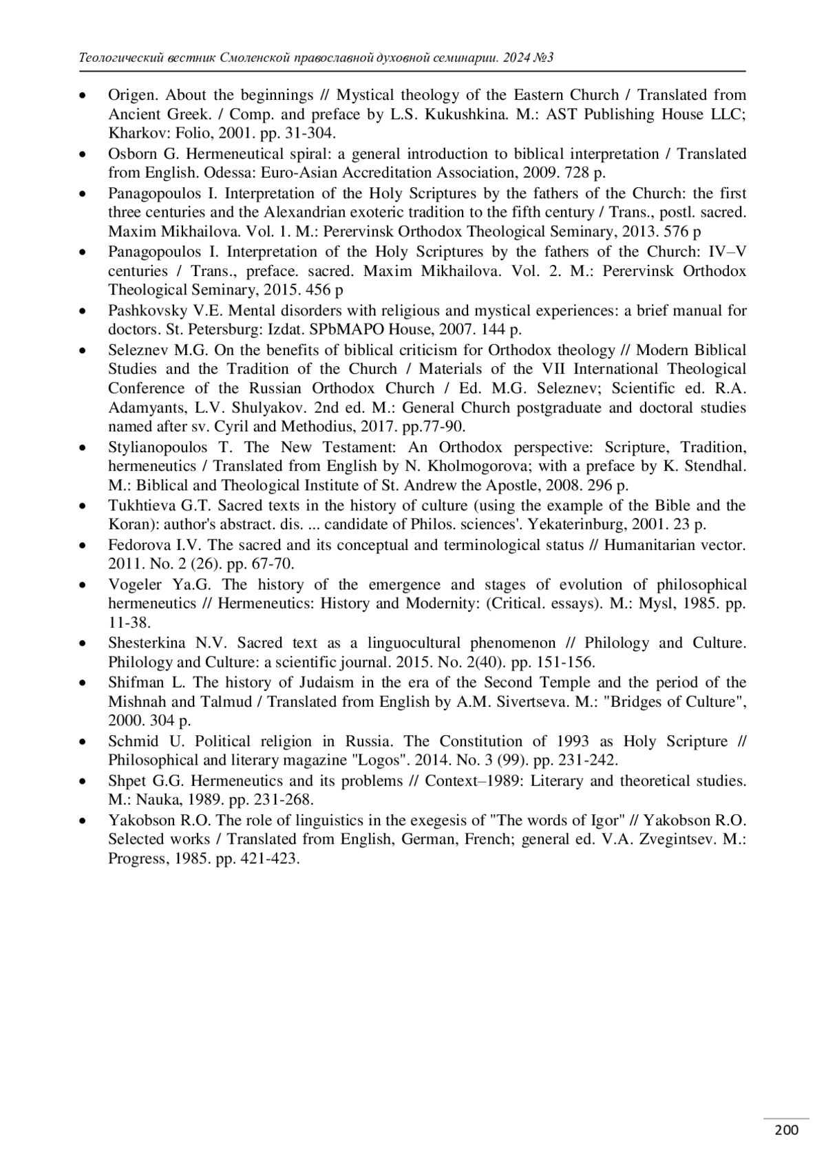 33. Николакопулос К. Православная герменевтика в ее самопонимании в сравнении с историко-критическим методом // XVI Ежегодная богословская конференция Православного Свято-Тихоновского гуманитарного университета: материалы. Т. 1. М.: Изд-во Православного Свято-Тихоновского гуманитарного университета, 2006. С. 14-21.