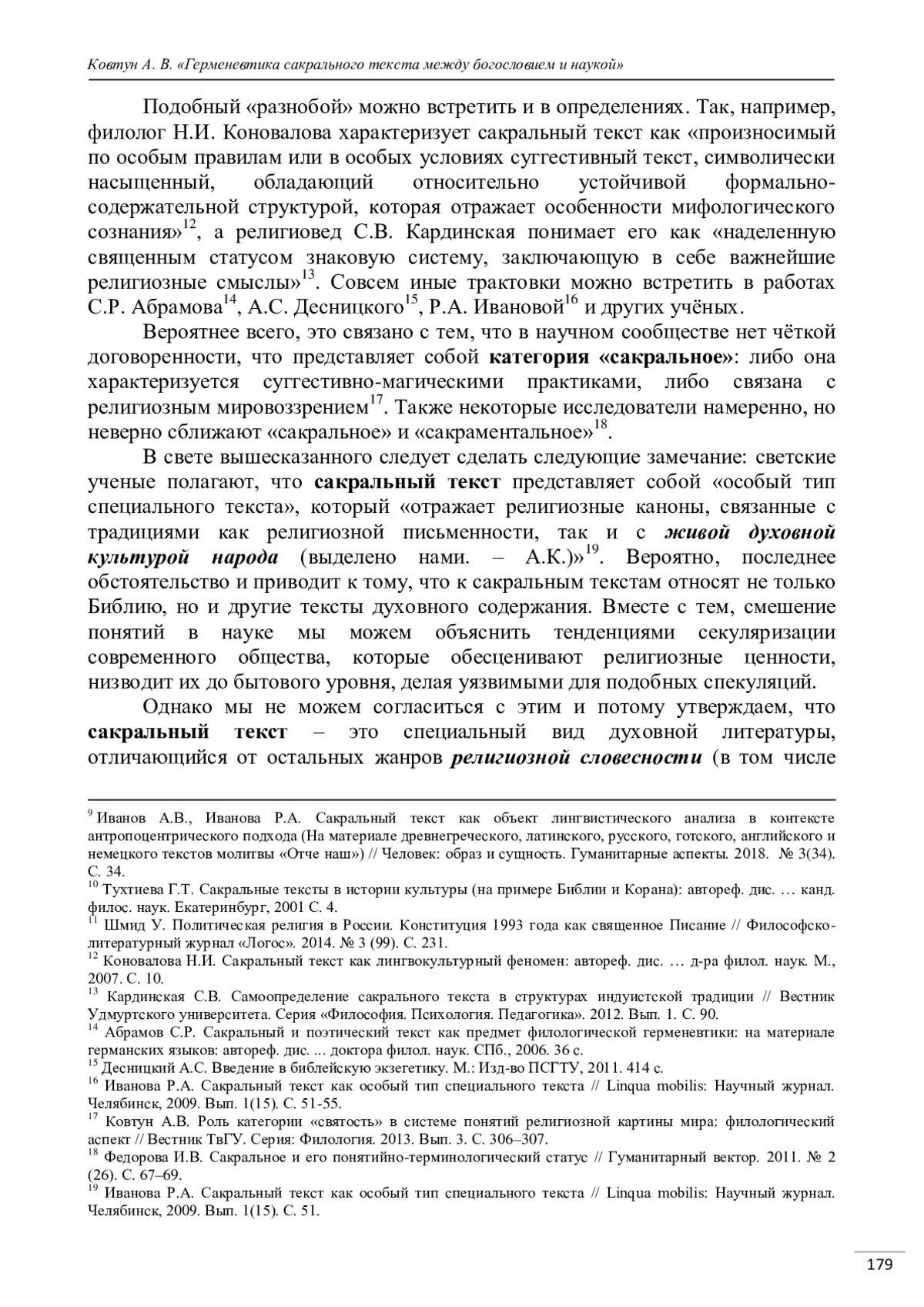 19. Ковтун А.В. Роль категории «святость» в системе понятий религиозной картины мира: филологический аспект // Вестник ТвГУ. Серия: Филология. 2013. Вып. 3. С. 303-308.
