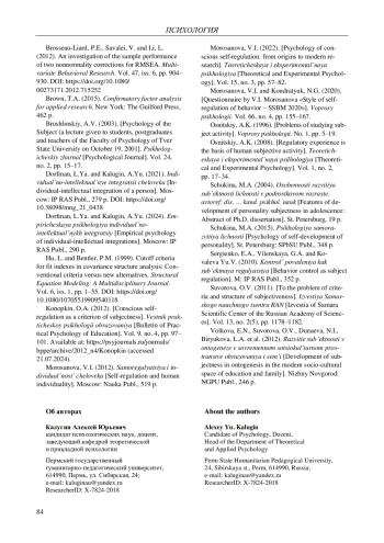 8. Моросанова В.И., Кондратюк Н.Г. Опросник В.И. Моросановой “Стиль саморегуляции поведения - ССПМ 2020” // Вопросы психологии. 2020. Т. 66, № 4. С. 155-167. EDN: XLPKCR