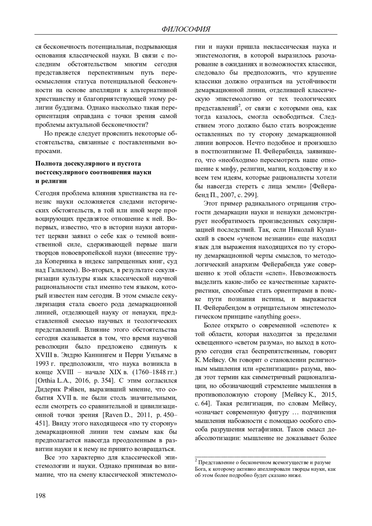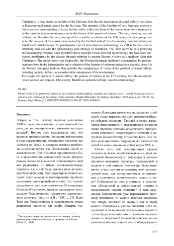 Ключевые фразы: проблема актуальной бесконечности, генезис науки xvii в, отношение науки и религии, ХРИСТИАНСТВО, БУДДИЗМ, потенциальная бесконечность, современная эпистемология