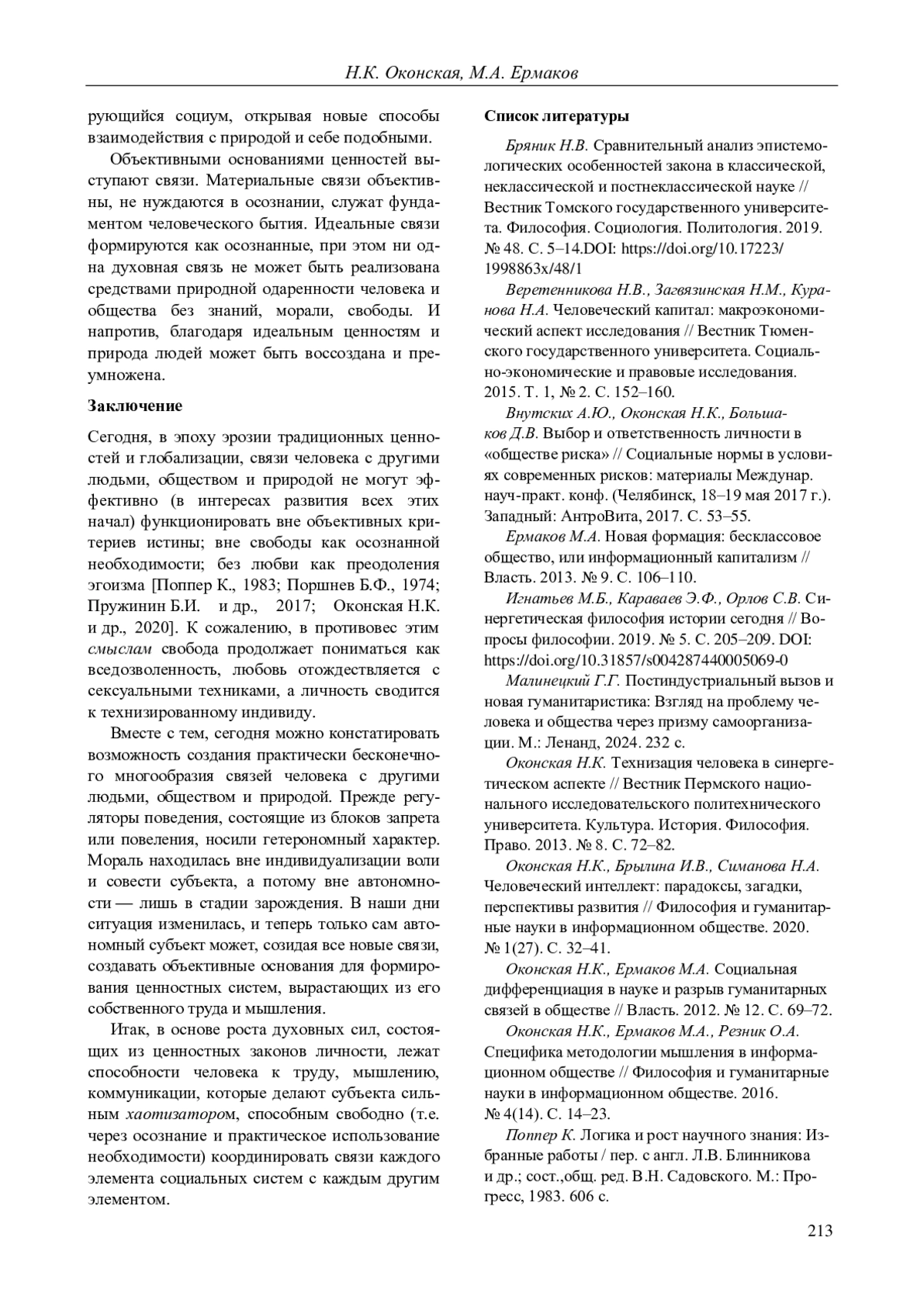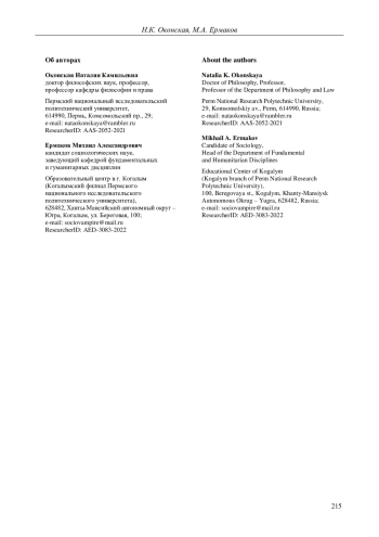 Автор (ы): ОКОНСКАЯ НАТАЛИЯ КАМИЛЬЕВНА, ЕРМАКОВ МИХАИЛ АЛЕКСАНДРОВИЧ