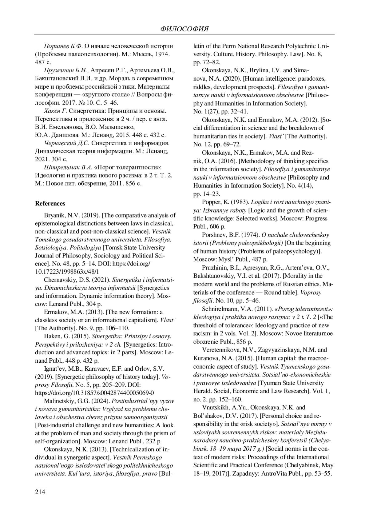 Журнал: ВЕСТНИК ПЕРМСКОГО УНИВЕРСИТЕТА. ФИЛОСОФИЯ. ПСИХОЛОГИЯ. СОЦИОЛОГИЯ