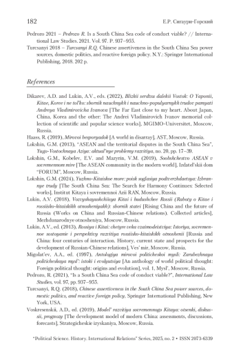 3. Локшин 2013 - Локшин Г.М. АСЕАН и территориальные споры в Южно-Китайском море // Юго-Восточная Азия: актуальные проблемы развития. 2013. № 20. С. 17-39.