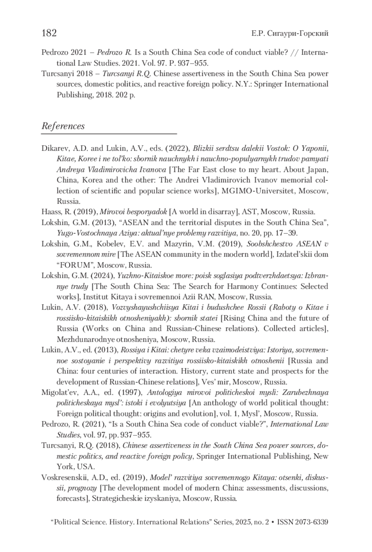 5. Локшин 2024 - Локшин Г.М. Южно-Китайское море: поиск согласия подтверждается: Избранные труды / отв. ред. Е.В. Никулина; Ин-т Китая и современной Азии РАН. М.: ИКСА РАН, 2024. 271 с.