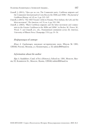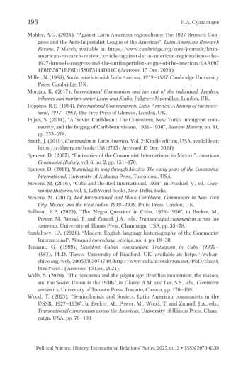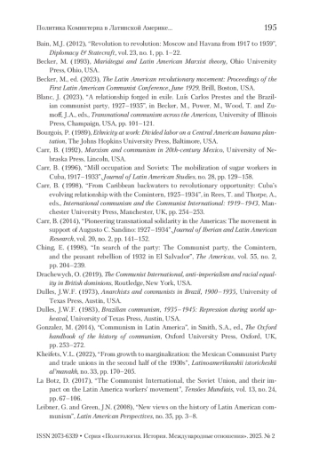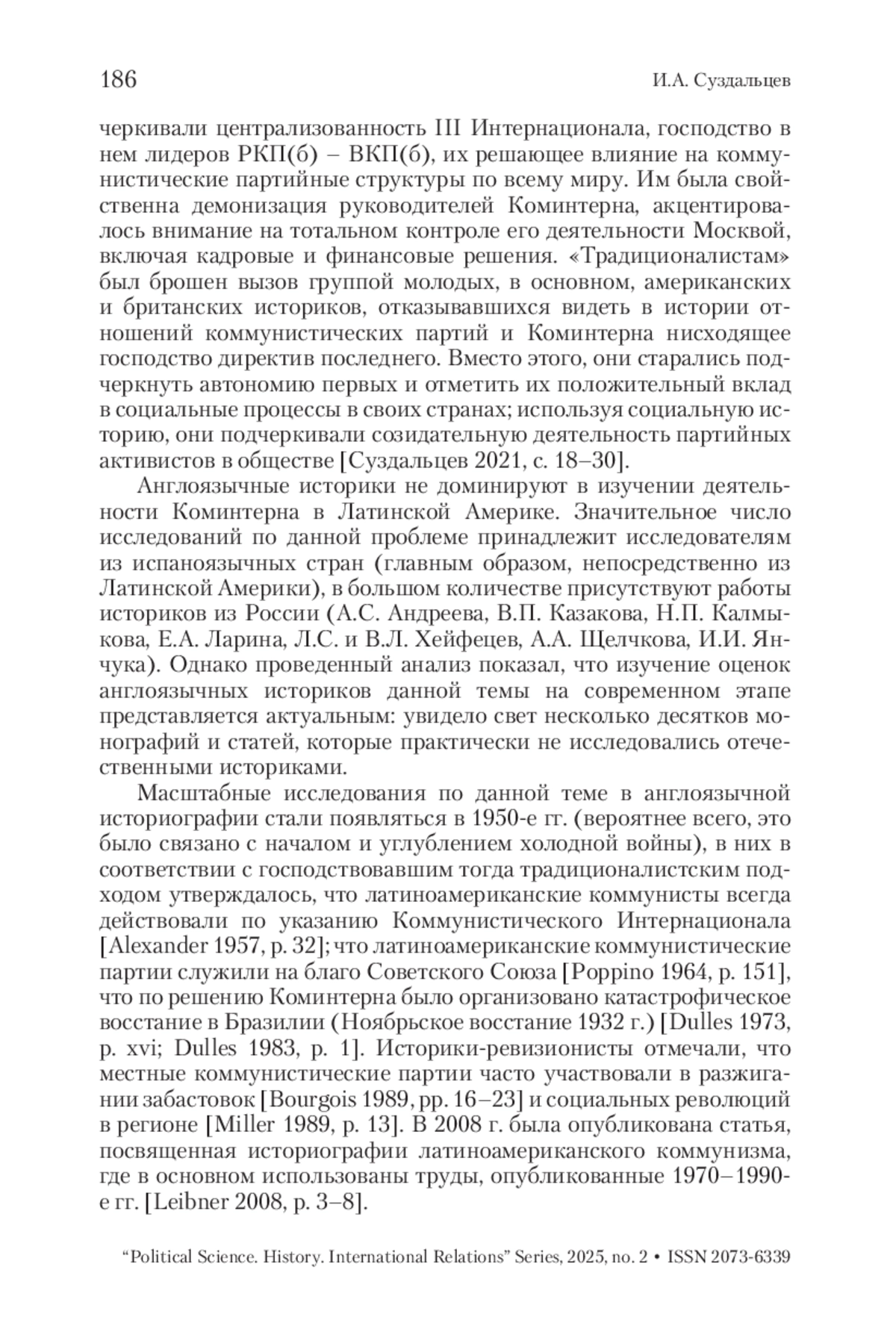 СУЗДАЛЬЦЕВ И. А. ПОЛИТИКА КОМИНТЕРНА В ЛАТИНСКОЙ АМЕРИКЕ В ОЦЕНКАХ СОВРЕМЕННЫХ АНГЛОЯЗЫЧНЫХ ИСТОРИКОВ // ВЕСТНИК РГГУ. СЕРИЯ: ПОЛИТОЛОГИЯ. ИСТОРИЯ. МЕЖДУНАРОДНЫЕ ОТНОШЕНИЯ. 2025. № 2