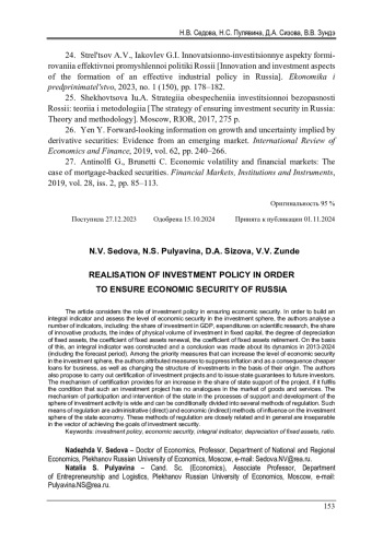 25. Шеховцова, Ю.А. Стратегия обеспечения инвестиционной безопасности России: теория и методология / Ю.А. Шеховцова. - М.: РИОР, 2017. - 275 с. EDN: YQOAXR