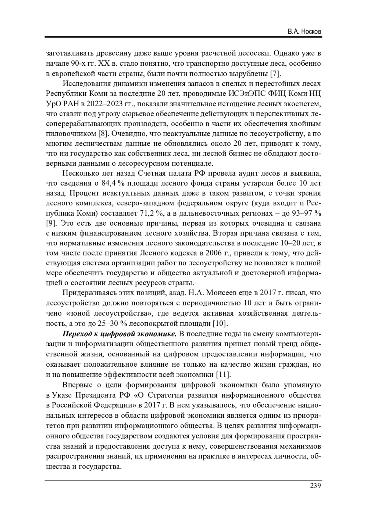 7. Носков, В.А. Оценка истощения лесов северного региона: методика, алгоритм и результаты апробации на примере Республики Коми / В.А. Носков // Вестник Пермского университета. Экономика. - 2021. - Т. 16, № 4. - С. 346-368. DOI: 10.17072/1994-9960-2021-4-346-368 EDN: MSZHZP