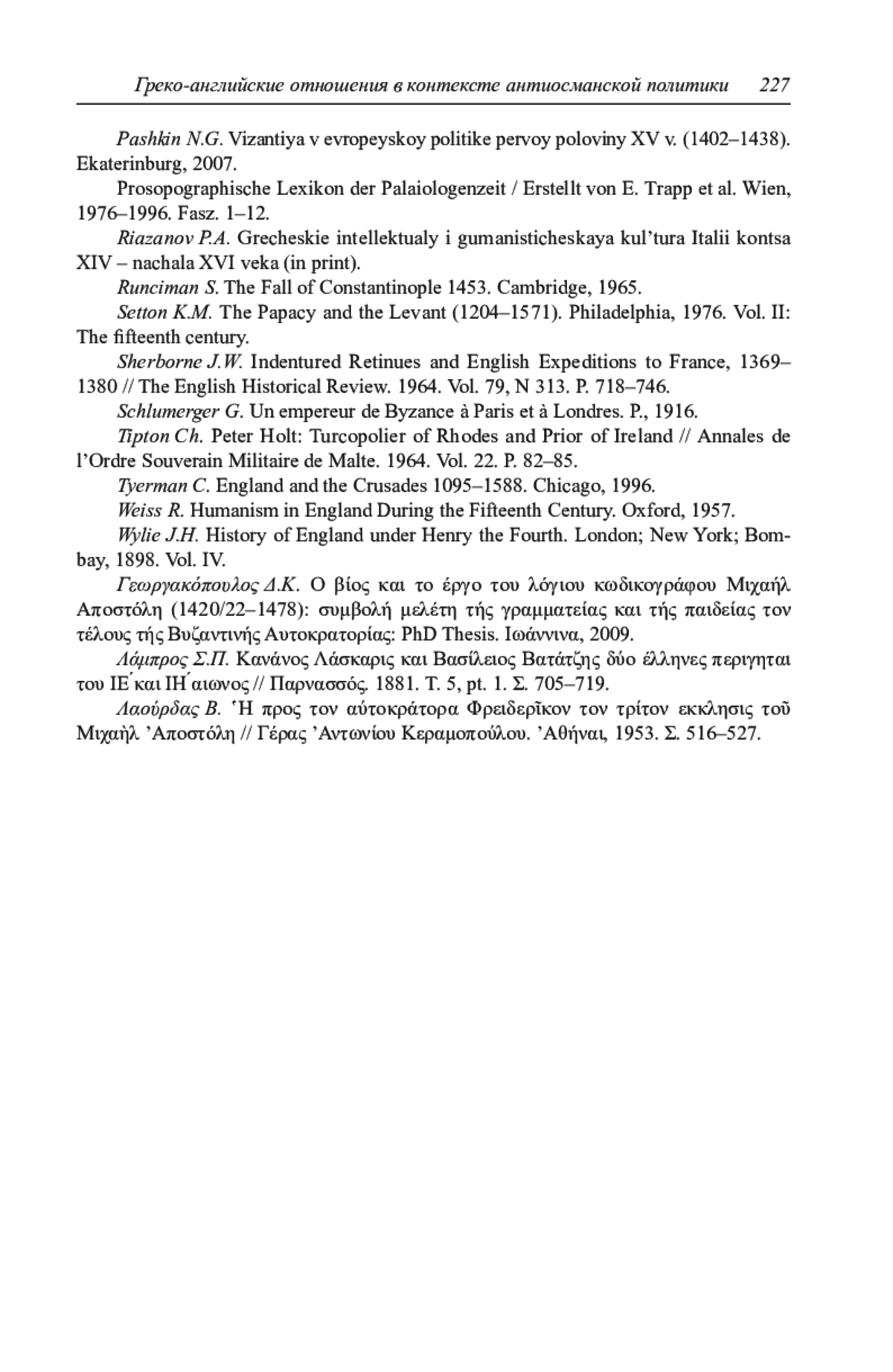 25. Harris J. Manuel II Palaiologos (1391-1425) and the Lollards // Greek Orthodox Theological Review. 2012. Vol. 57 (1-4). P. 213-234.