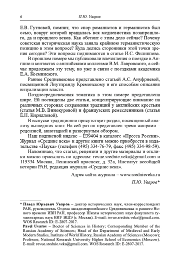 УВАРОВ П. Ю. ОТ РЕДАКТОРА // СРЕДНИЕ ВЕКА. 2021. Т. 82 № 2