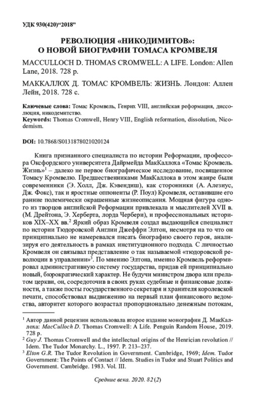 7. Guy J. Thomas Cromwell and the intellectual origins of the Henrician revolution // Idem. The Tudor Monarchy. L., 1997. P. 213-237.