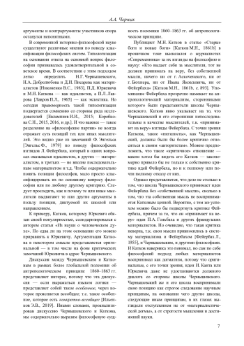 Проанализирована полемика между Н. Г. Чернышевским и М. Н. Катковым о статье П. Д. Юркевича «Из науки о человеческом духе». В частности, анализируются статьи М. Н. Каткова «Старые боги и новые боги» и «По поводу “полемических красот” в “Современнике”», опубликованные в «Русском вестнике», и работа Н. Г. Чернышевского «Полемические красоты», опубликованная в «Современнике». Отмечено, что по форме спор похож скорее на перебранку, чем на научную дискуссию, но содержательно в ходе спора Н. Г. Чернышевского и М. Н. Каткова были выражены философские основания разногласий между теорией школы Чернышевского и взглядами М. Н. Каткова и П. Д. Юркевича. Указывается, что принцип партийности философии не сводится к разделению мыслителей только на материалистов и идеалистов в онтологии, но также гласит о гносеологическом различии между монизмом и дуализмом. Дискуссия между М. Н. Катковым и Н. Г. Чернышевским рассматривается как особенное, в котором отражается всеобщее. Другими словами, в эпизодическом споре между мыслителями выражена основная суть всей дискуссии 1860-х гг. об антропологическом принципе. Начертаны возможные пути преодоления ситуации, в которой под видом диалога ведется два несвязанных друг с другом монолога. Намечены перспективы налаживания философского диалога между представителями разных философских школ, разных точек зрения на фундаментальные вопросы онтологии и теории познания. Отмечено, что в XIX в. в России материализм как философское учение был менее разработан, чем идеализм, представленный немецкими классиками, в связи с чем могла возникать недооценка этого учения оппонентами.