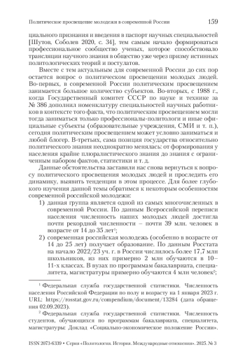 Актуальность темы обусловлена наличием в современной России разных вариантов и подходов к политическому просвещению молодых людей.