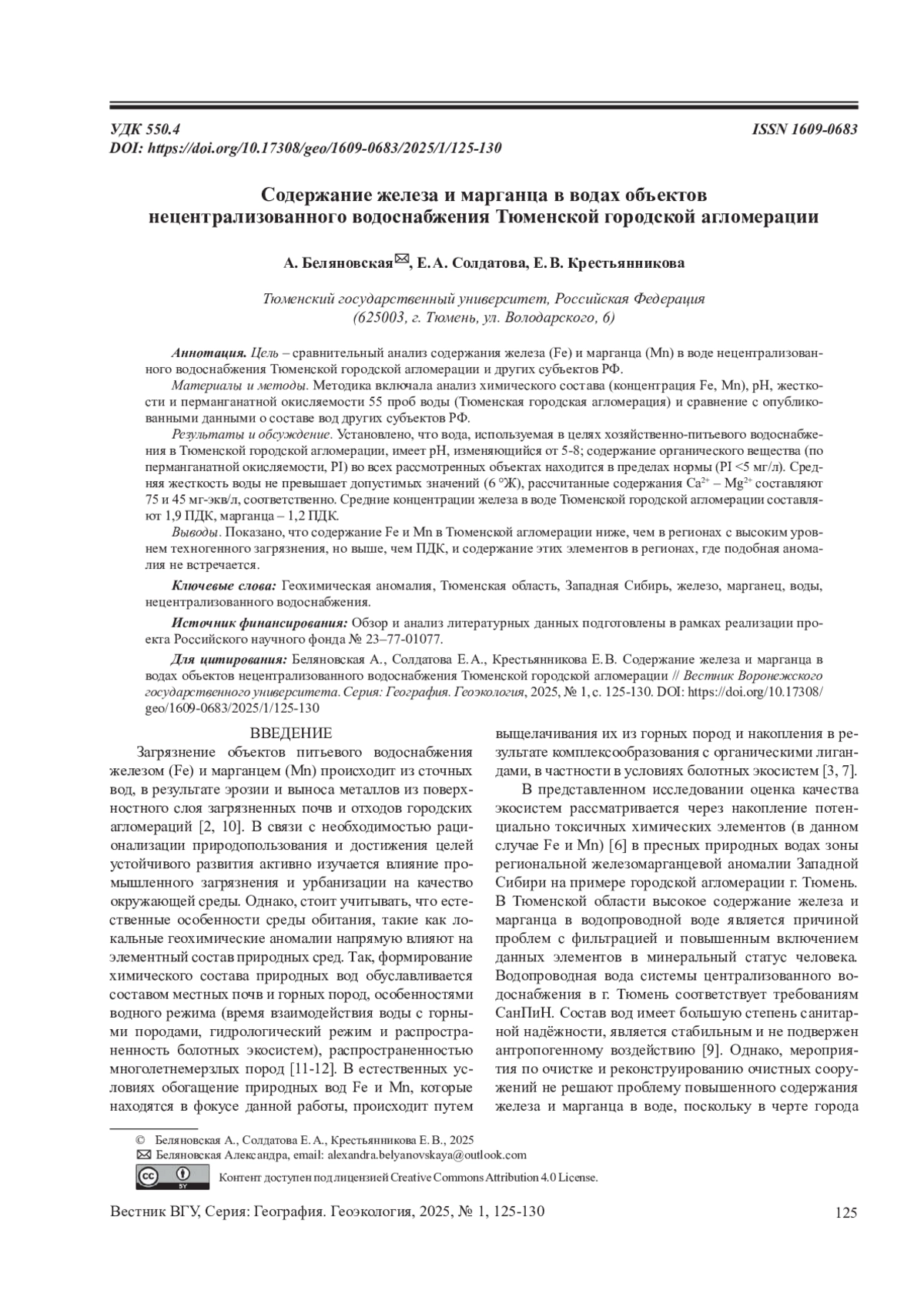 3. 	Иванова И. С. Железосодержащие подземные воды верхней гидродинамической зоны центральной части Западно-Сибирского артезианского бассейна // Водные ресурсы, 2014, №2(41), с. 164-179. EDN: RWANVB