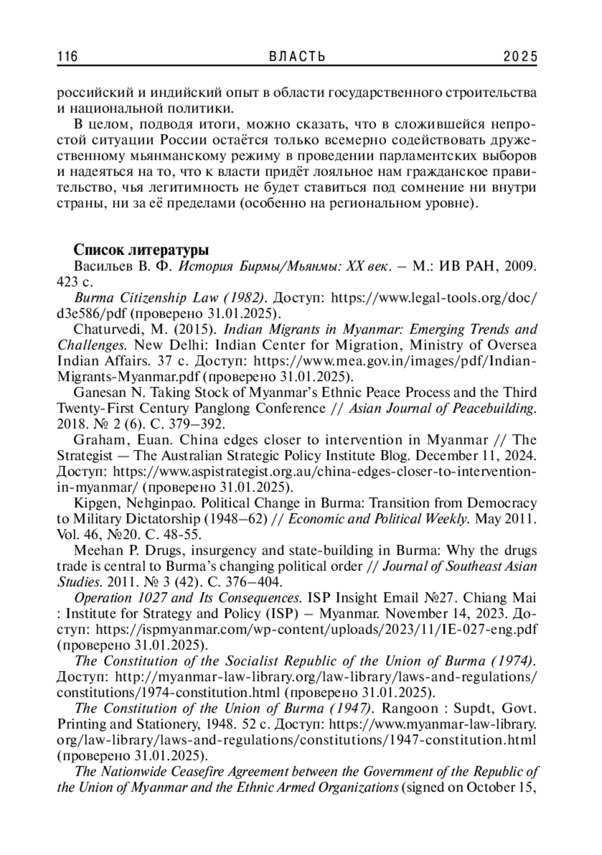 2. 	Burma Citizenship Law (1982). Доступ: https://www.legal-tools.org/doc/d3e586/pdf (проверено 31.01.2025).