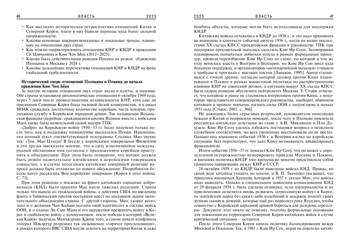 АСМОЛОВ К. В. ОТНОШЕНИЯ КНР И КНДР: РЕТРОСПЕКТИВЫ И ПЕРСПЕКТИВЫ // ВЛАСТЬ. 2025. ТОМ 33 № S4