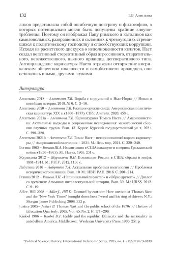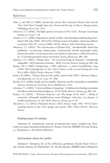 3. Алентьева 2021a - Алентьева Т.В. Карикатурама Томаса Наста // Американистика: Актуальные подходы и современные исследования: межвузовский сборник научных трудов. Вып. 13. Курск: Курский государственный ун-т, 2021. С. 298-328.
