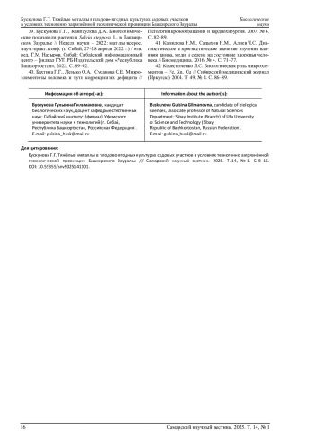 11. Мотылева С.М. Особенности содержания тяжёлых металлов (Рb, Ni, Zn, Fe, Сu) в плодах, ягодах и атмосферных осадках в связи с оценкой сортов для использования в селекции: автореф. дис. … канд. с/х. наук: 06.01.05. СПб., 2000. 23 с. EDN: ZLEJRX
