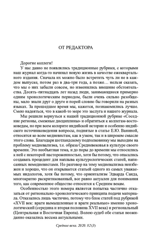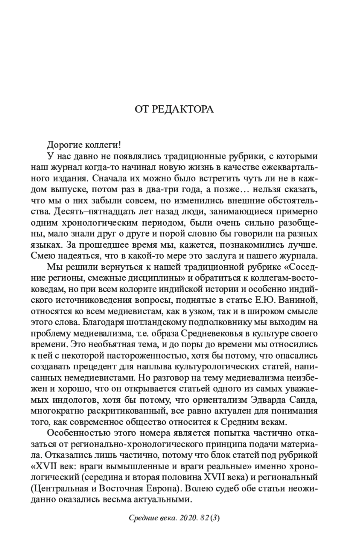 УВАРОВ П. Ю. ОТ РЕДАКТОРА // СРЕДНИЕ ВЕКА. 2021. Т. 82 № 3