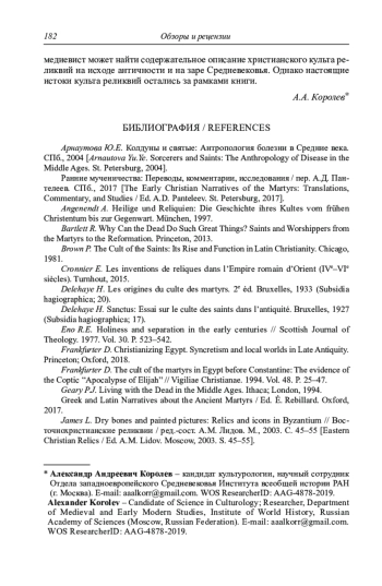 5. Brown P. The Cult of the Saints: Its Rise and Function in Latin Christianity. Chicago, 1981.