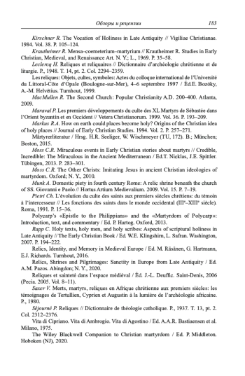 32. Saxer V. Morts, martyrs, reliques en Afrique chrétienne aux premiers siècles: les témoignages de Tertullien, Cyprien et Augustin à la lumière de l’archéologie africaine. P., 1980.