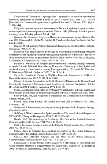 43. Teter M. Kilka uwag na temat podziałów społecznych i religijnych pomiędzy Żydami i chrześcijanami we wschodnich miastach dawnej Rzeczpospolitej // Kwartalnik Historii Zydów. 2003. T. 207. S. 327-335.