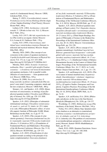 10. Спасков А.Н. Волновая концепция Я в квантовой монадологии // Интеллектуальная культура Беларуси: гуманитарная безопасность в условиях глобальных вызовов: материалы Седьмой междунар. науч. конф. (Минск, 16-17 ноября 2023 г.): в 2 т. / под ред. А.А. Лазаревича и др. Минск: Четыре четверти, 2023. Т. 2. С. 131-135.