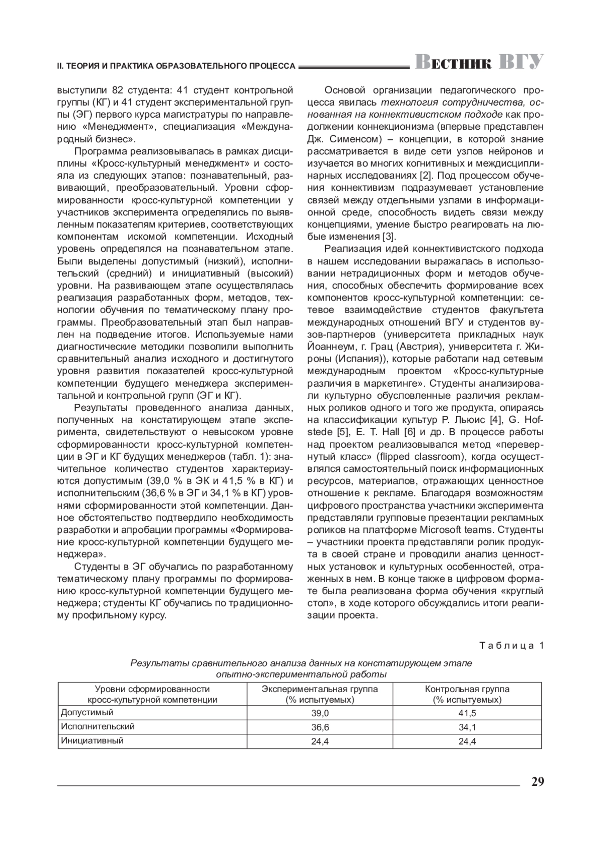 Сетевое взаимодействие студентов с потенциальными работодателями способствует решению очень важной проблемы, которая состоит в том, что до сих пор остается слабой организация практической составляющей профессиональной подготовки будущих менеджеров: необходимо повышать уровень подготовки студентов к практике; требуется совершенствование способов взаимодействия вузов и работодателей; следует внедрять индивидуальную траекторию обучения в процессе прохождения практики и др. [7]. Сетевое взаимодействие с потенциальными работодателями в цифровом пространстве характеризуется не только высокой практикоориентированностью, предоставляя возможности проводить мастер-классы, реализовывать методы воркшоп и проблемного обучения, работать над предоставленными кейсами, обсуждать реальные производственные проблемы и перспективы трудоустройства, но и создает естественную кросскультурную среду, обеспечивающую условие для организации квазипрофессиональной деятельности будущих менеджеров.