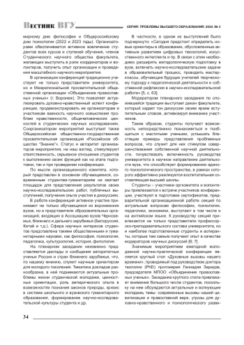 7. Молодежь и общество: теоретические модели и реальность: материалы II Международной молодежной научно-практической конференции, посвященной Всемирному дню философии и Общероссийскому дню психологии, Воронеж, 21 ноября 2023 года. - Воронеж: Изд. дом ВГУ, 2024. - 399 с.