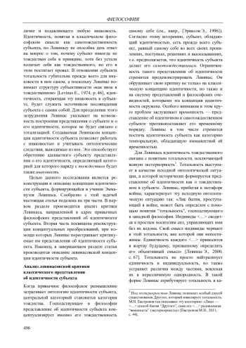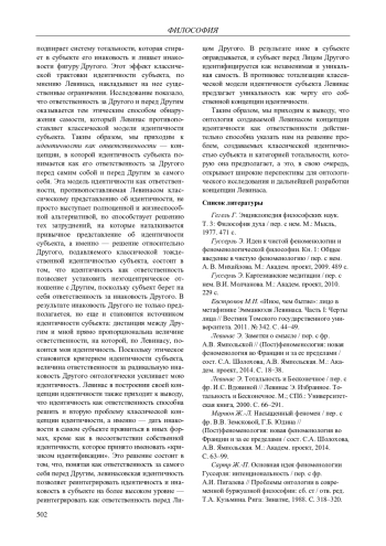 Ключевые фразы: идентичность субъекта, ответственность, тотальность, Другой, тождественность, инаковость, критерий идентичности