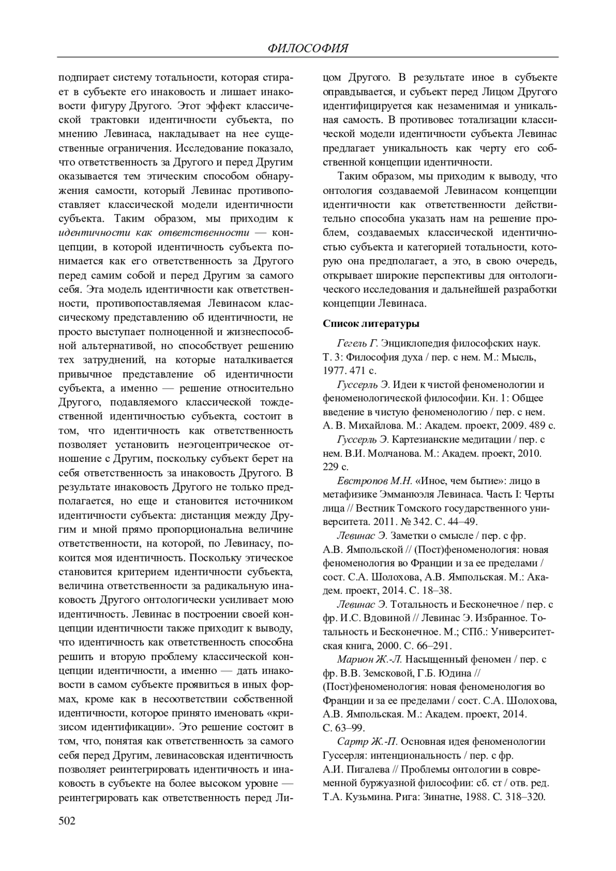 БУЛАНОВ С. М. ОНТОЛОГИЯ ИДЕНТИЧНОСТИ СУБЪЕКТА В ФИЛОСОФИИ ЭММАНУЭЛЯ ЛЕВИНАСА // ВЕСТНИК ПЕРМСКОГО УНИВЕРСИТЕТА. ФИЛОСОФИЯ. ПСИХОЛОГИЯ. СОЦИОЛОГИЯ. 2024. № 4