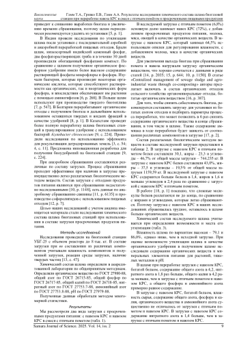 Исследовали химический состав шлама при переработке навоза КРС в смеси с птичьим пометом и просроченными пищевыми продуктами методом метанового сбраживания. В исследуемой загрузке с навозом КРС содержится больше белков в 1,4, жиров в 1,6 и меньше углеводов в 2,4 раза по сравнению с загрузкой с навозом КРС и птичьим пометом. Установили, что сбраживание загрузки с навозом КРС увеличило содержание нитратного азота в 1,4 раза, по сравнению с загрузкой с навозом КРС и птичьим пометом. Сбраживании загрузки с навозом КРС увеличило в шламе содержание общего азота в 7,2, общего фосфора в 6,9, нитратного азота в 4,5, органического вещества в 13,2 раз, уменьшило общего калия в 2,8 раз. В шламе увеличилось содержание органических веществ, общего азота и общего фосфора в ходе переработки. При использовании шлама в качестве органического удобрения необходимо сбалансировать его состав. Полученный шлам соответствует требованиям ГОСТ 33380-2015 по содержанию тяжелых металлов. Рассчитаны уравнения парной линейной регрессии для использования при формировании состава загрузок.
