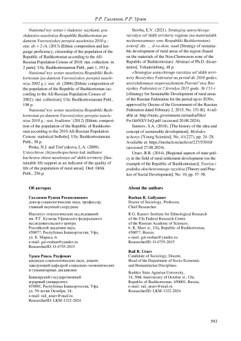 19. Ураев Р.Р. Региональные аспекты государственной политики в области развития сельских поселений (на примере Республики Башкортостан) // Теория и практика общественного развития. 2014. № 10. С. 56-58. EDN: SJKIMR